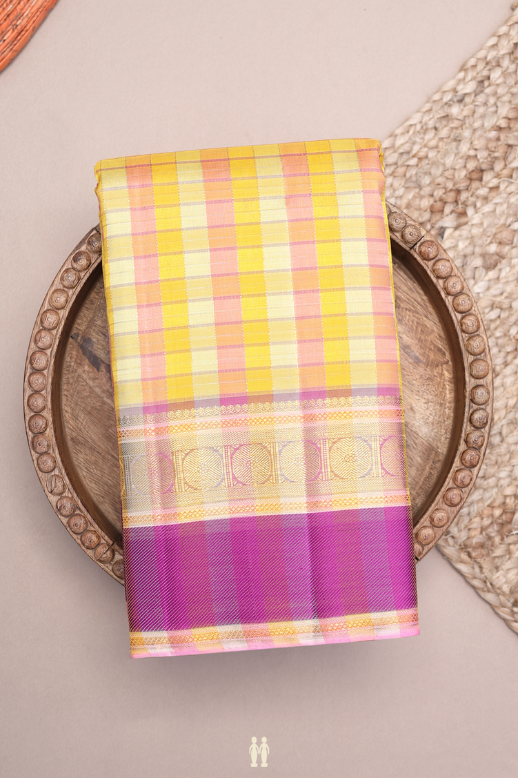 Kanchipuram Silk Saree In Multicolor With Checks Design