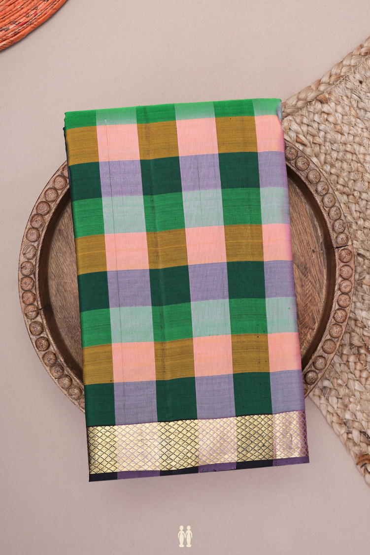 Kanchipuram Silk Saree In Multicolor With Checks Design