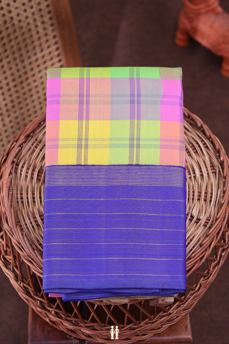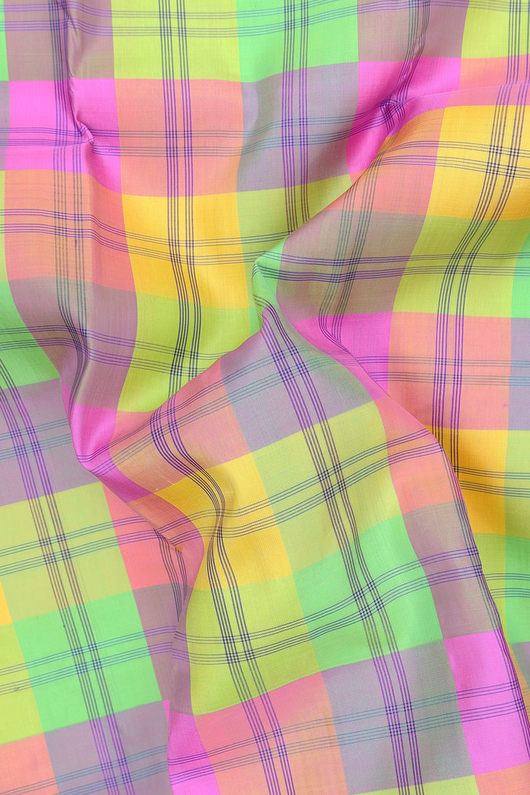Kanchipuram Silk Saree In Multicolor With Checks Design