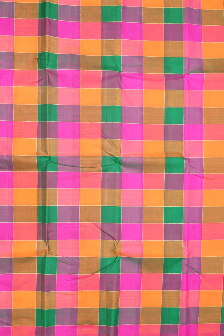 Kanchipuram Silk Saree In Multicolor With Checks Design