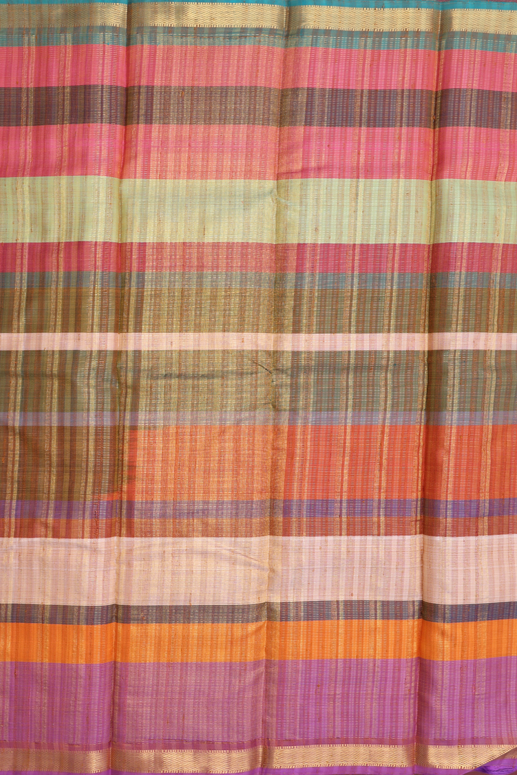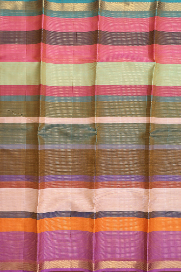 Kanchipuram Silk Saree In Multicolor With Stripes Design