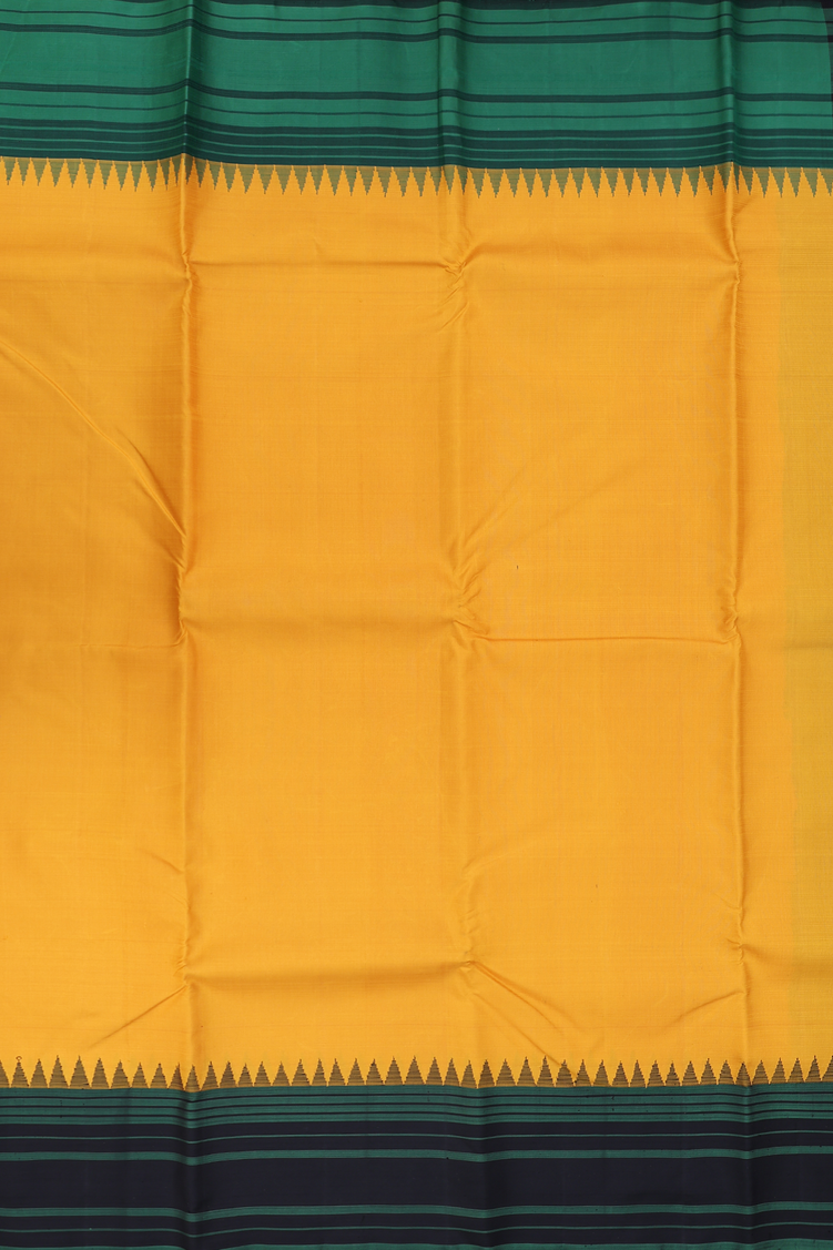 Kanchipuram Silk Saree In Mustard Yellow With Contrast Border