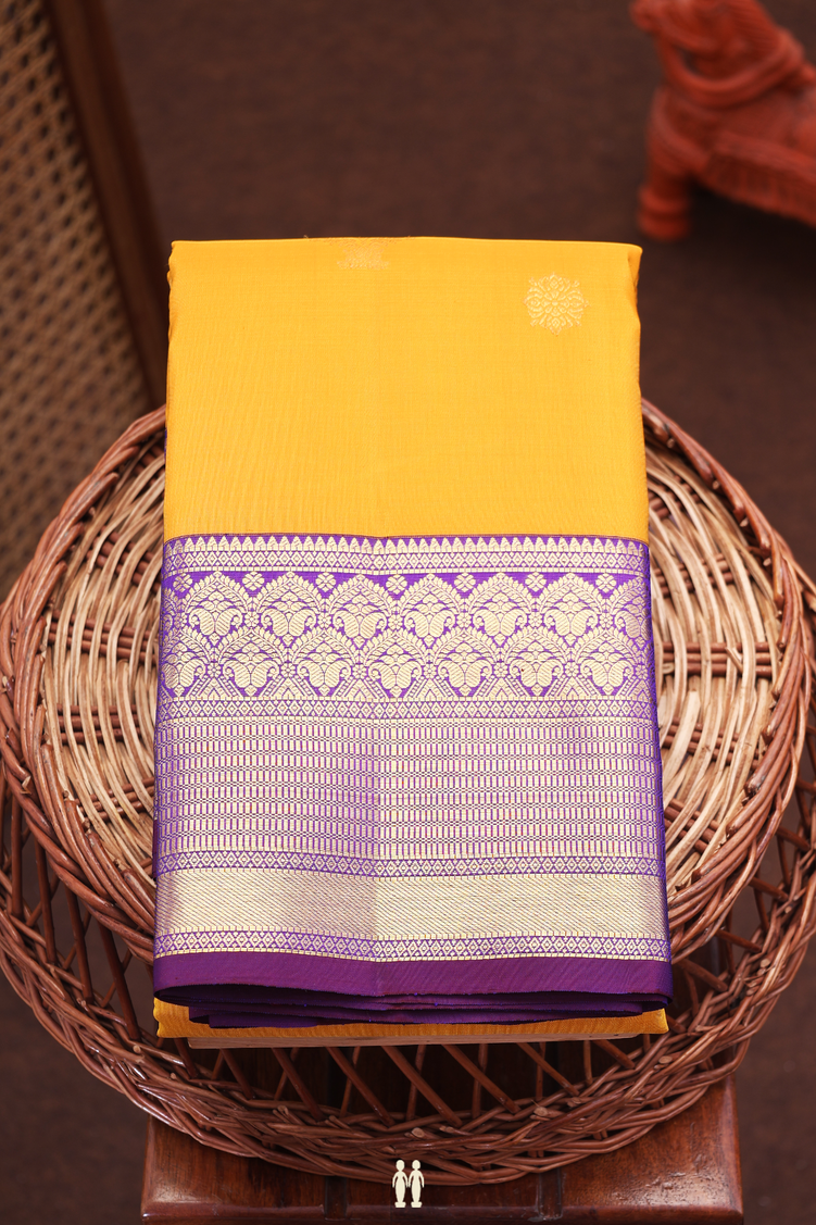 Kanchipuram Silk Saree In Mustard Yellow With Zari Motifs