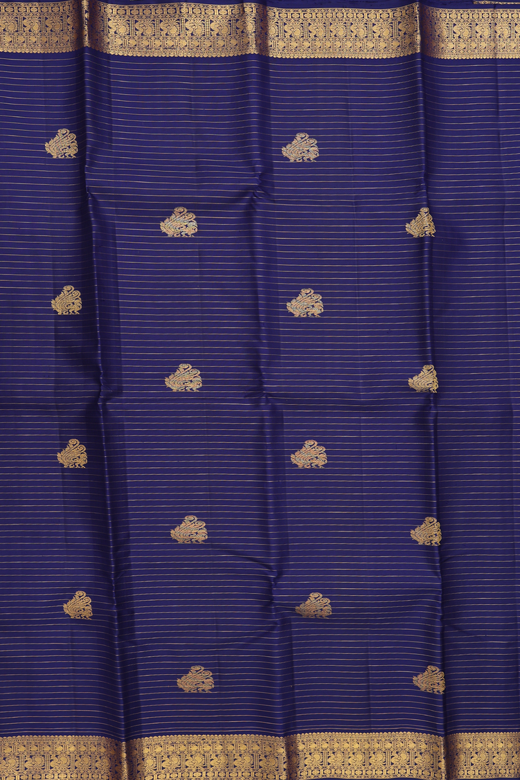 Kanchipuram Silk Saree In Navy Blue Along Stripes With Butta