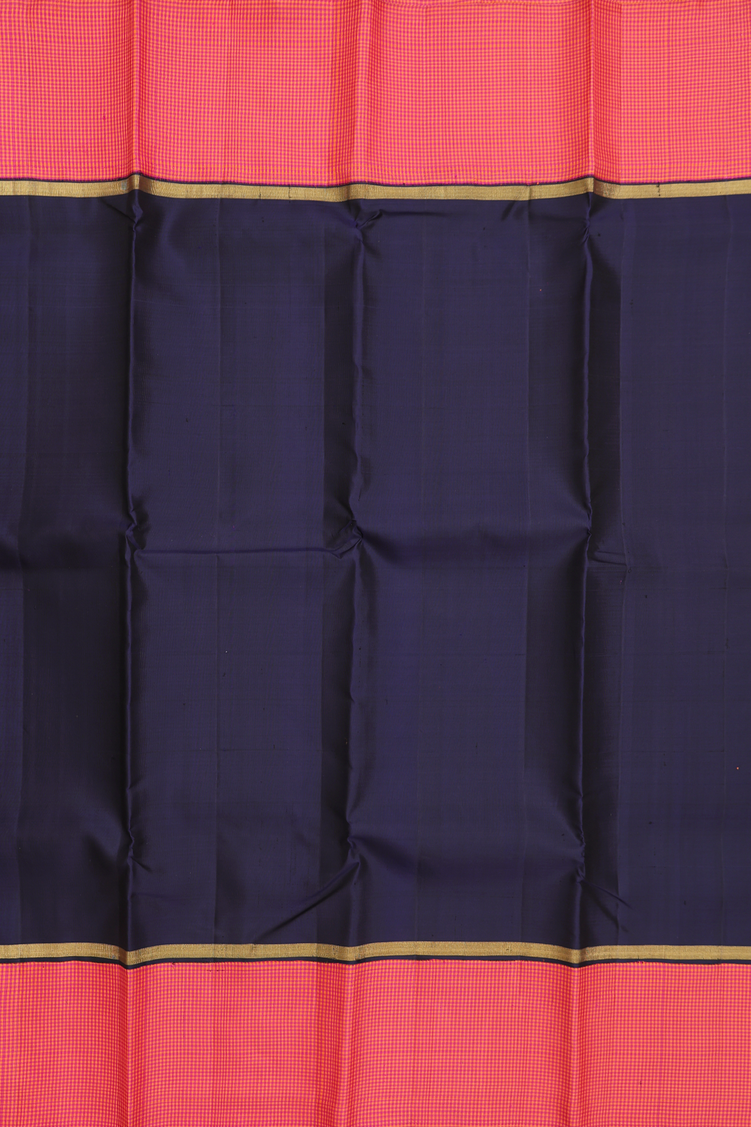 Kanchipuram Silk Saree In Navy Blue With Checks Border