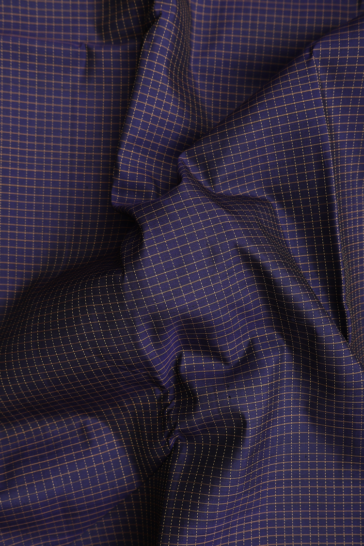 Kanchipuram Silk Saree In Navy Blue With Checks Design
