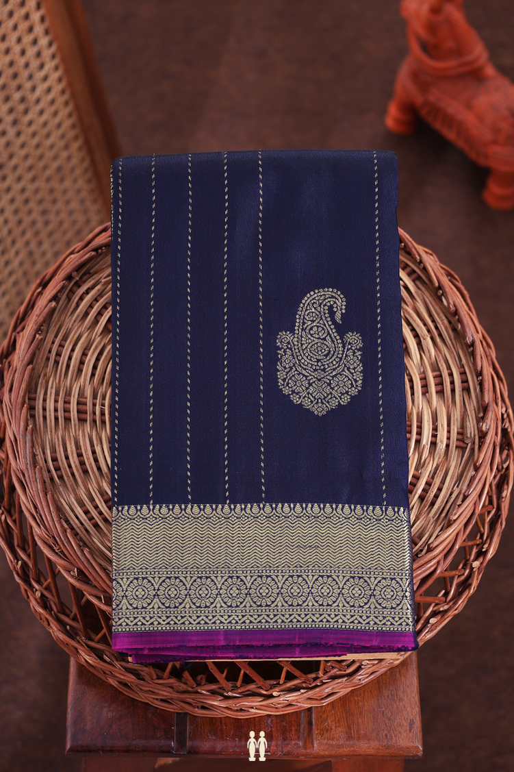 Kanchipuram Silk Saree In Navy Blue With Stripes Design