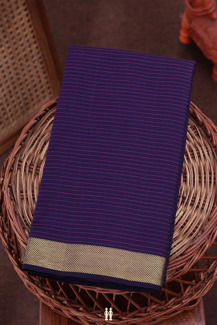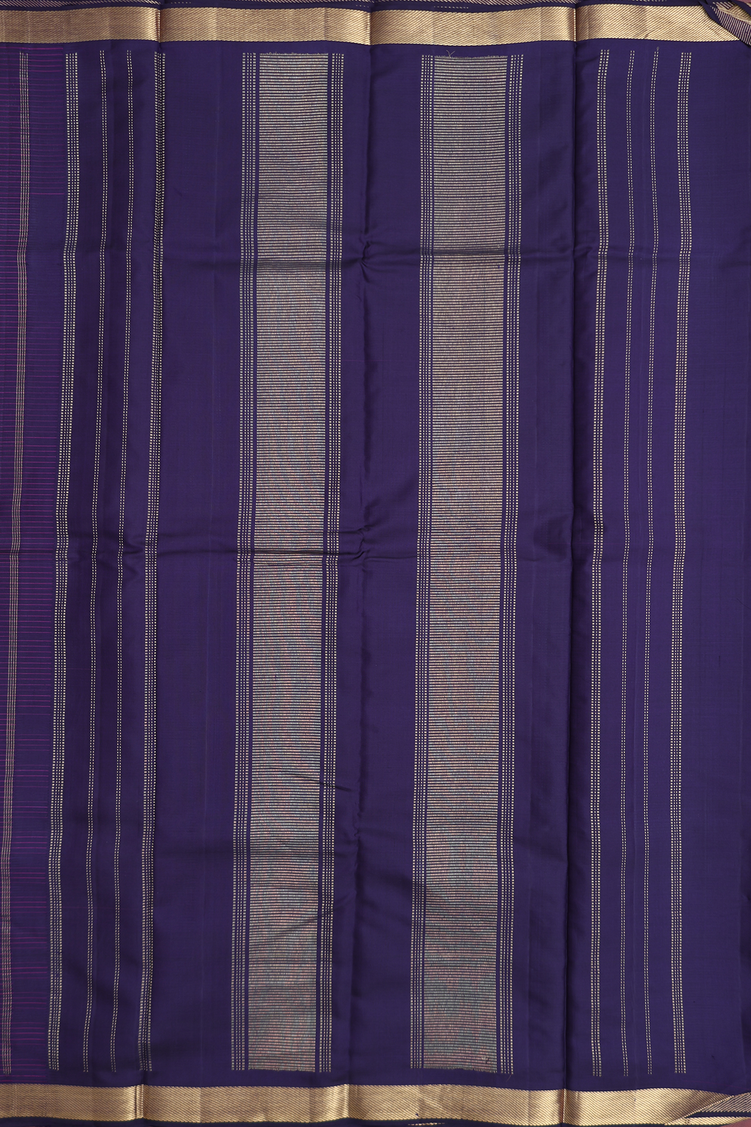 Kanchipuram Silk Saree In Navy Blue With Stripes Design