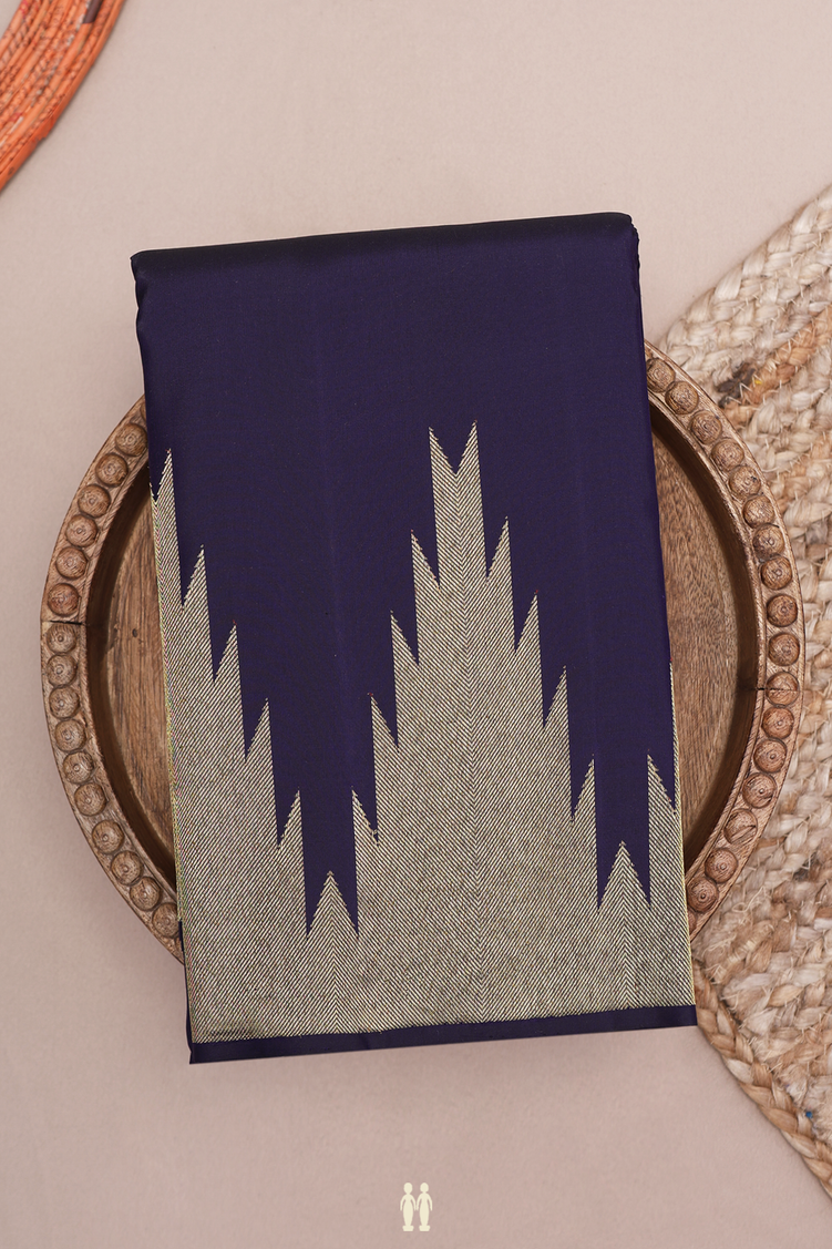 Kanchipuram Silk Saree In Navy Blue With Temple Border