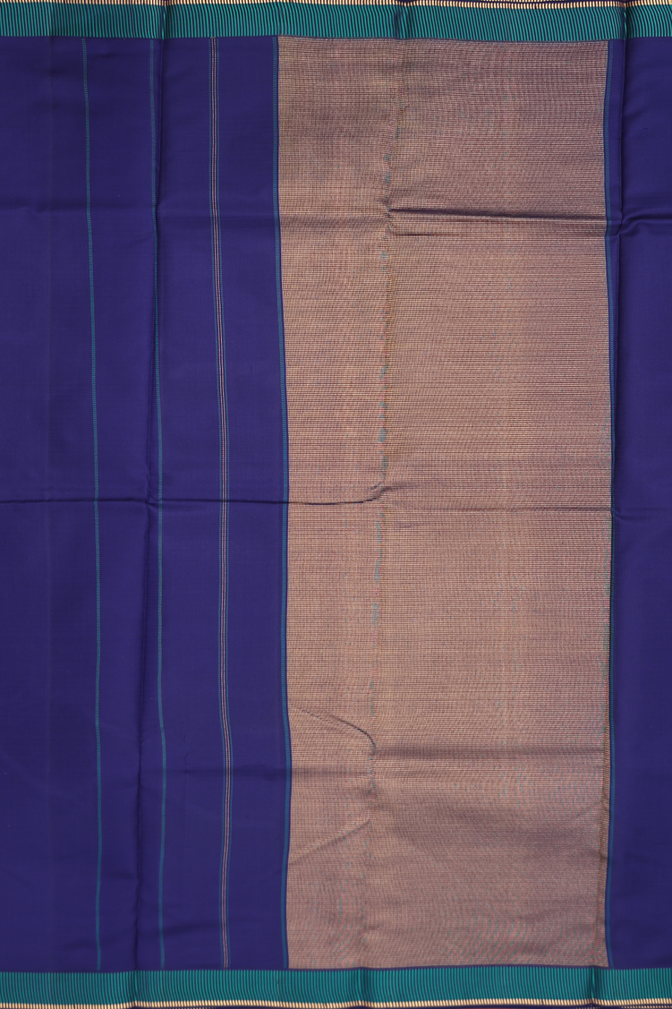 Kanchipuram Silk Saree In Navy Blue With Threadwork Border