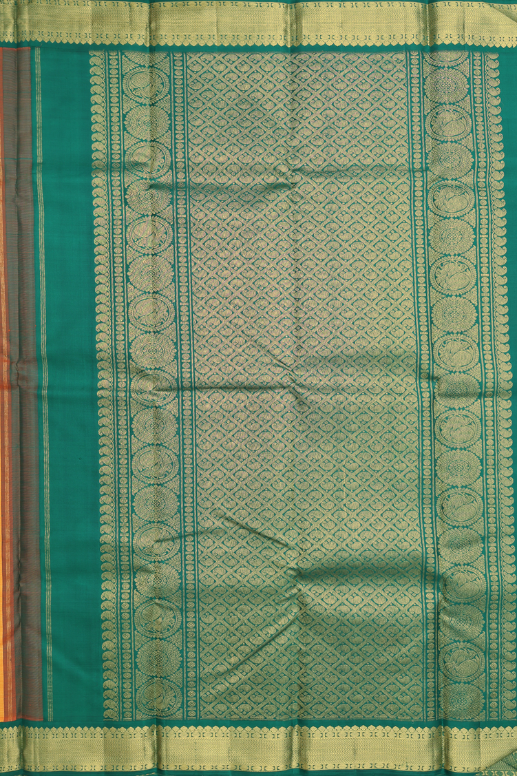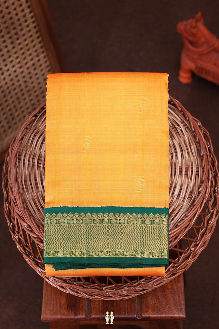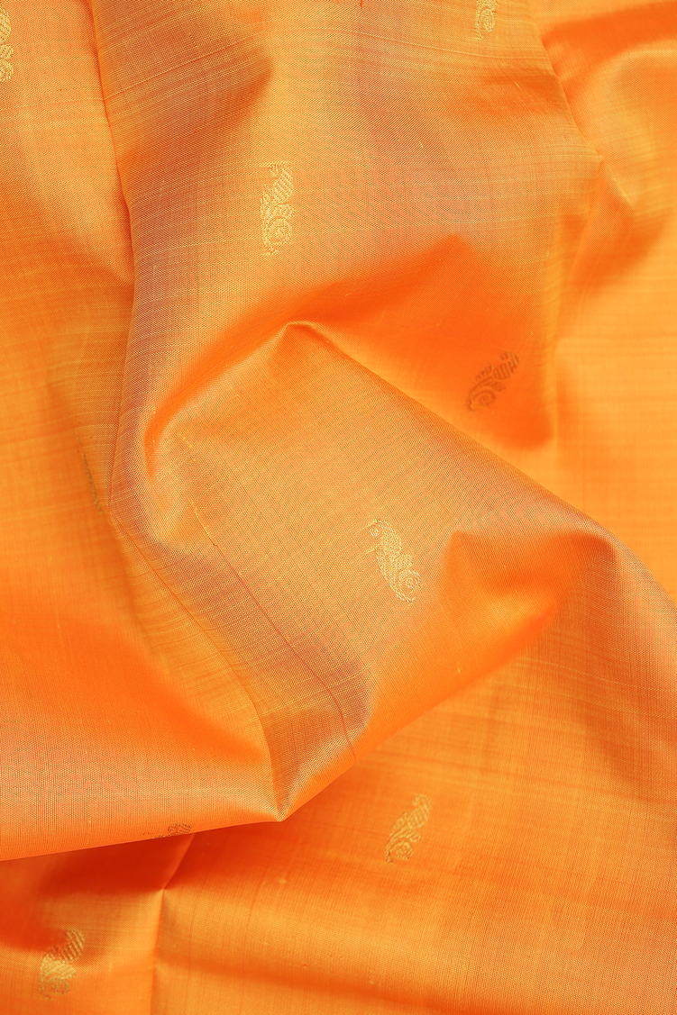 Kanchipuram Silk Saree In Orange With Floral Buttas