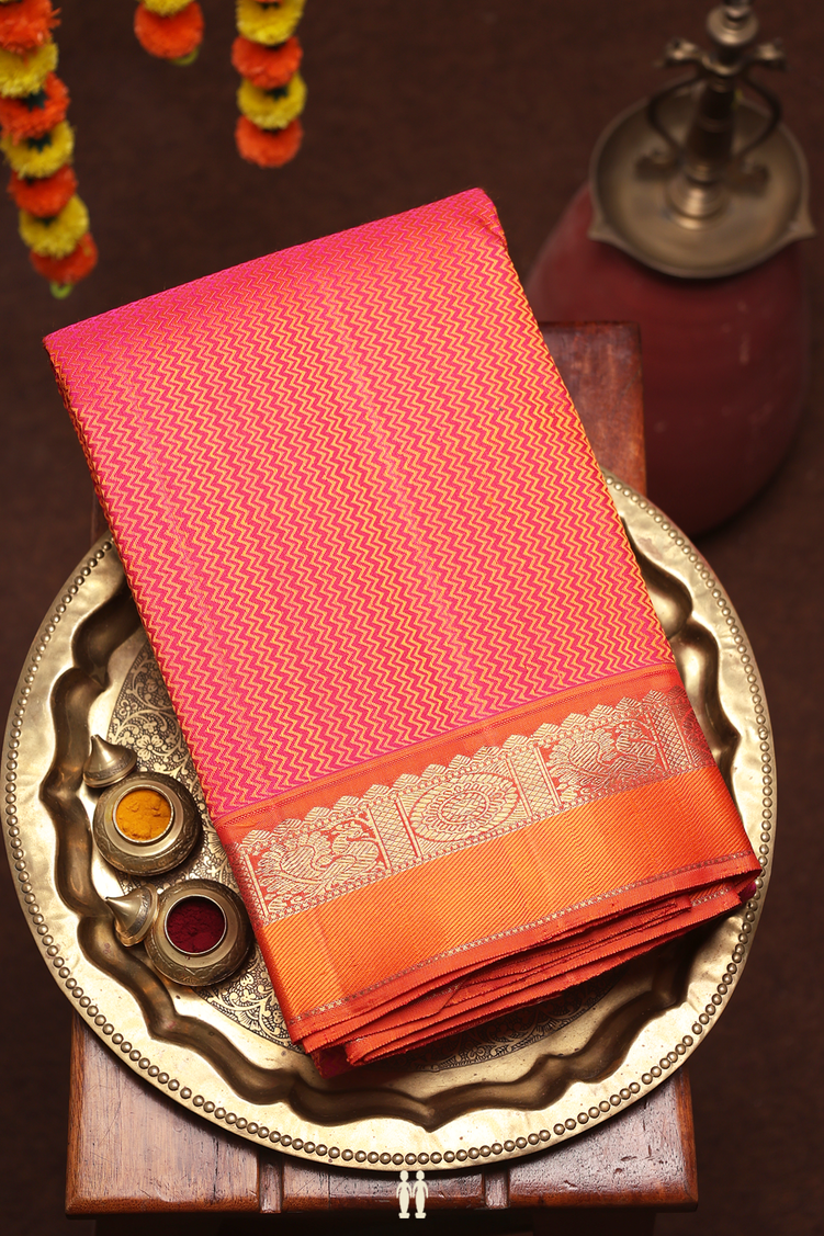 Kanchipuram Silk Saree In Orange With Jacquard Pattern