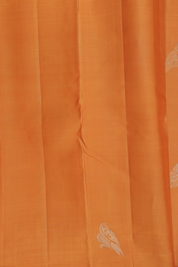 Kanchipuram Silk Saree In Royal Orange With Parrot Motifs