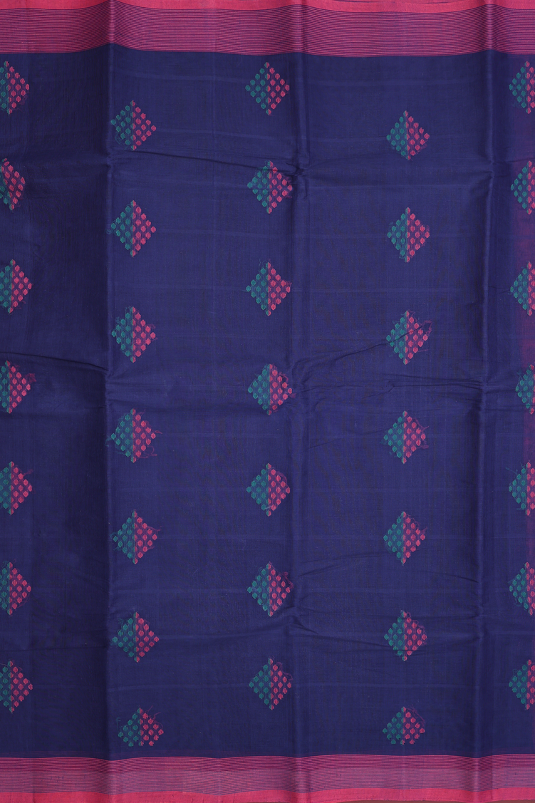 Kanchi Cotton Saree In Oxford Blue With Threadwork Buttas