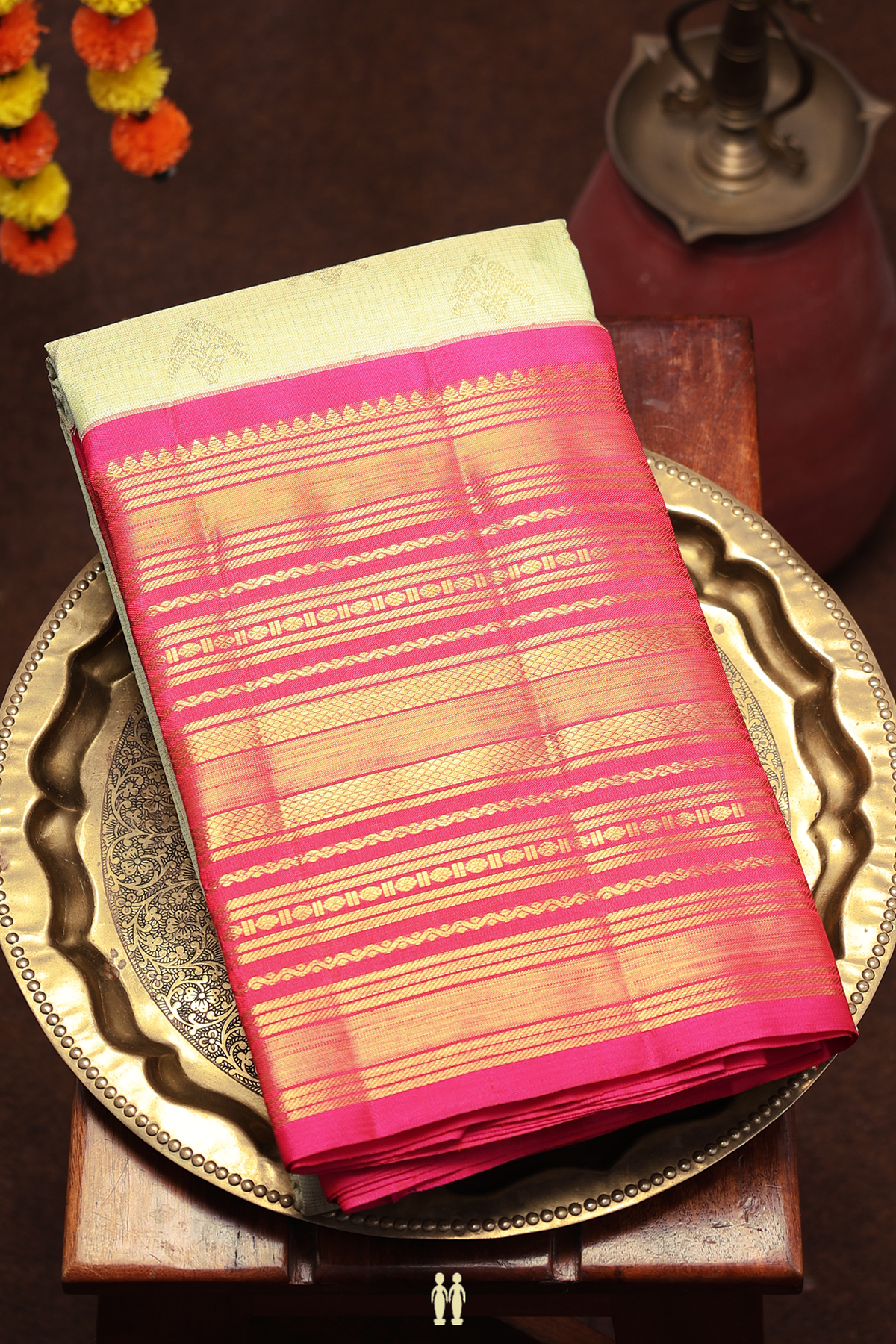 Kanchipuram Silk Saree In Pale Green Stripes Along Buttas