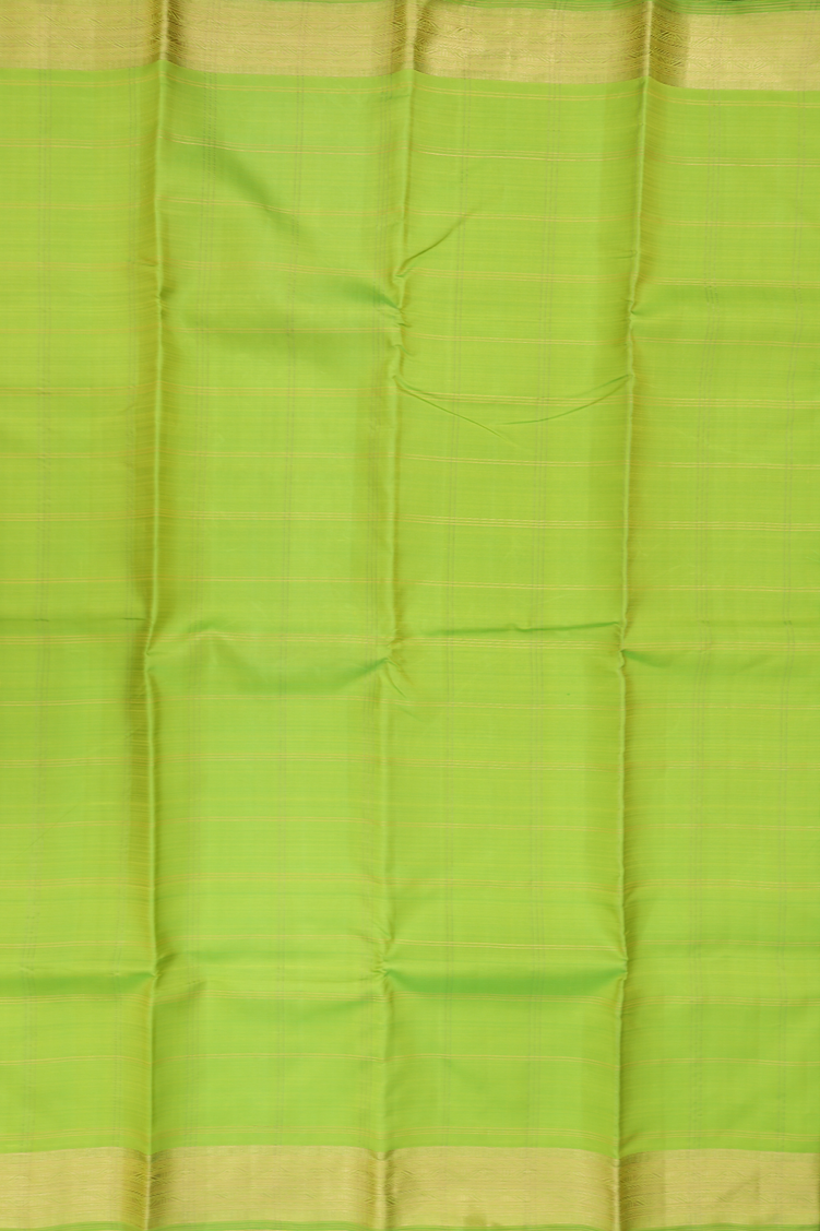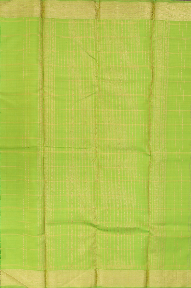 Kanchipuram Silk Saree In Parrot Green With Checks Design