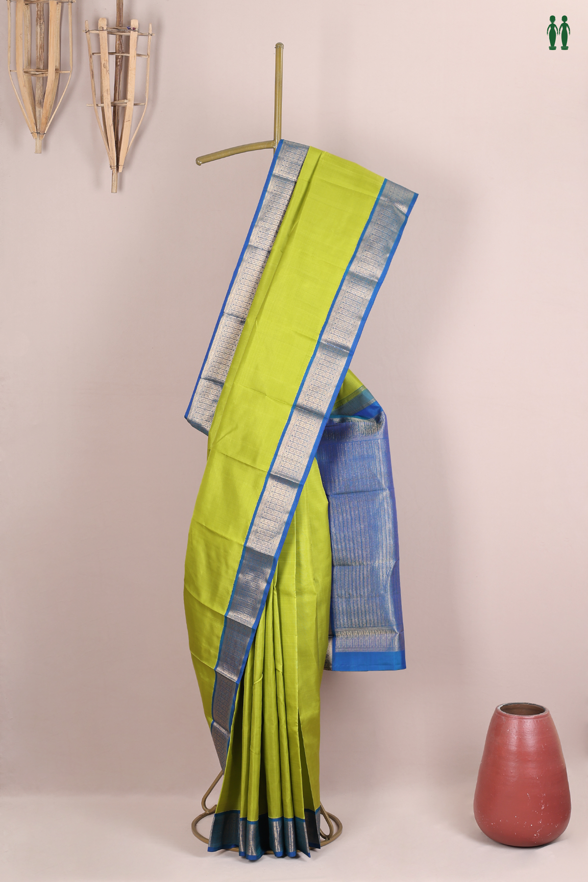 Kanchipuram Silk Saree In Parrot Green With Contrast Border
