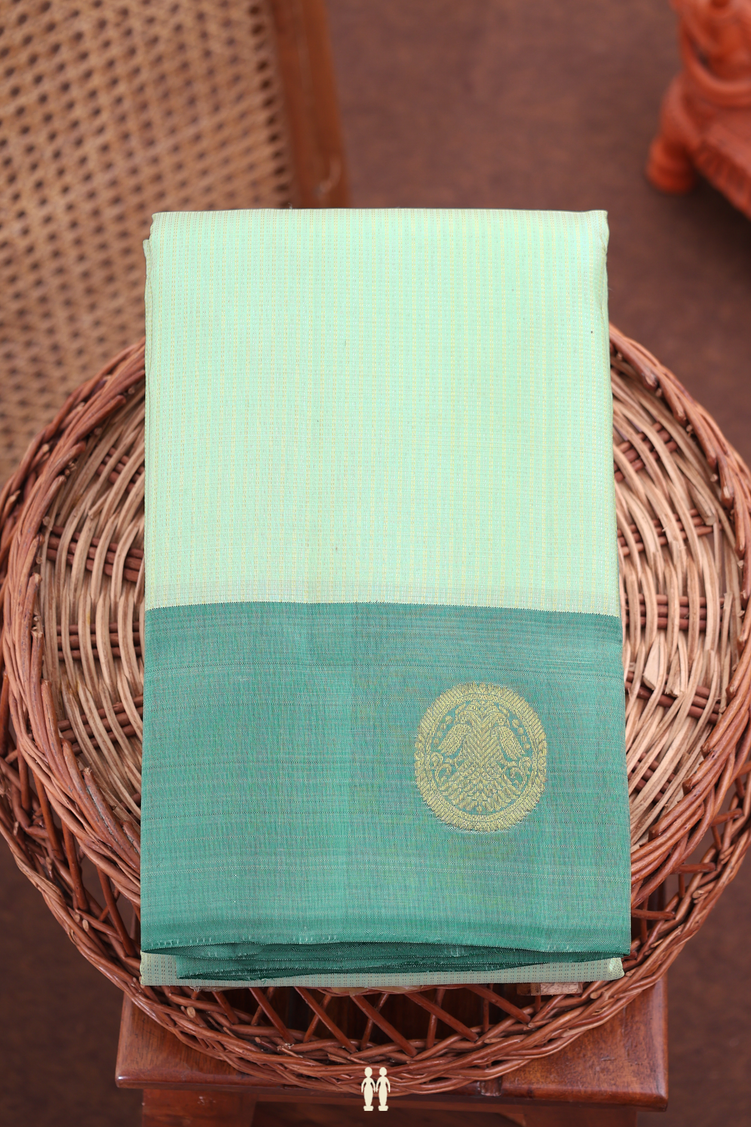 Kanchipuram Silk Saree In Pastel Green With Stripes Design
