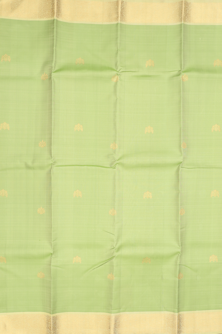 Kanchipuram Silk Saree In Pastel Green With Zari Buttas