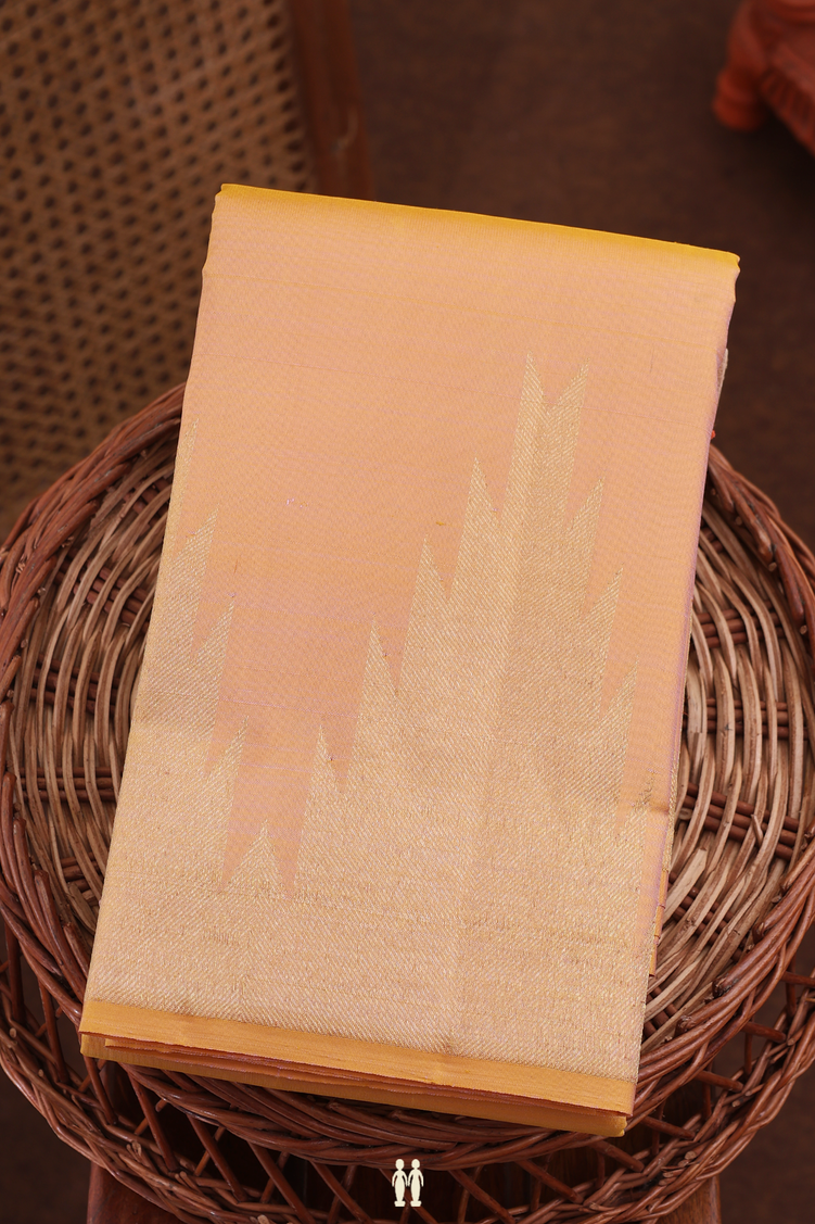 Kanchipuram Silk Saree In Pastel Orange With Temple Border