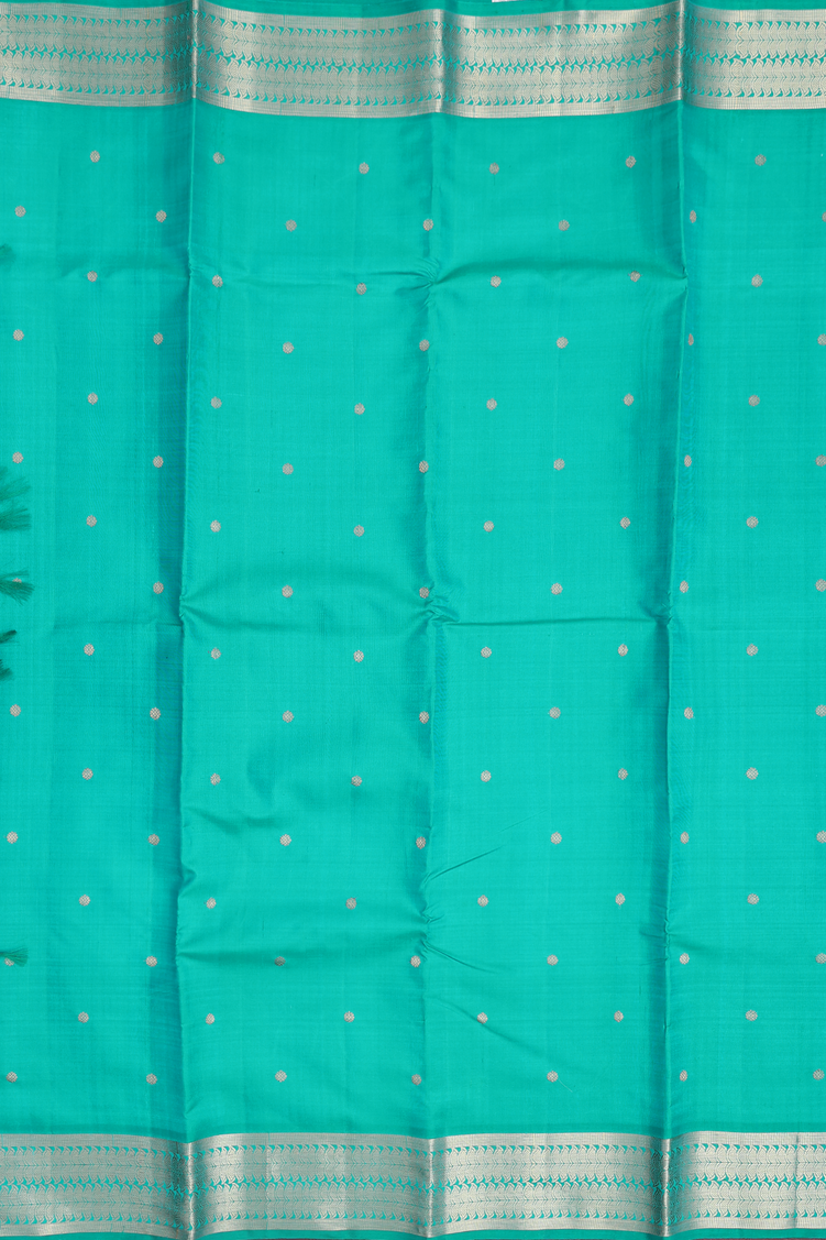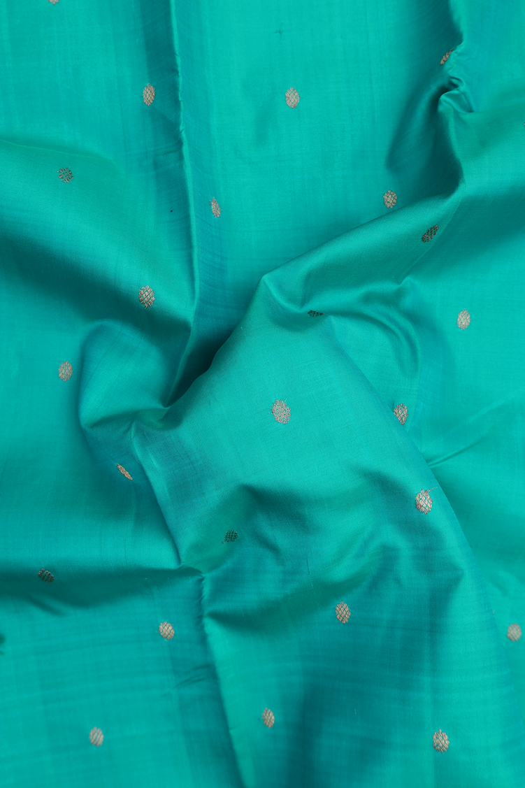 Kanchipuram Silk Saree In Peacock Green With Floral Buttis