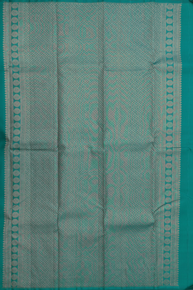 Kanchipuram Silk Saree In Peacock Green With Zari Buttas