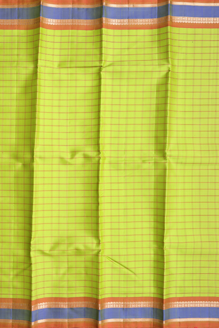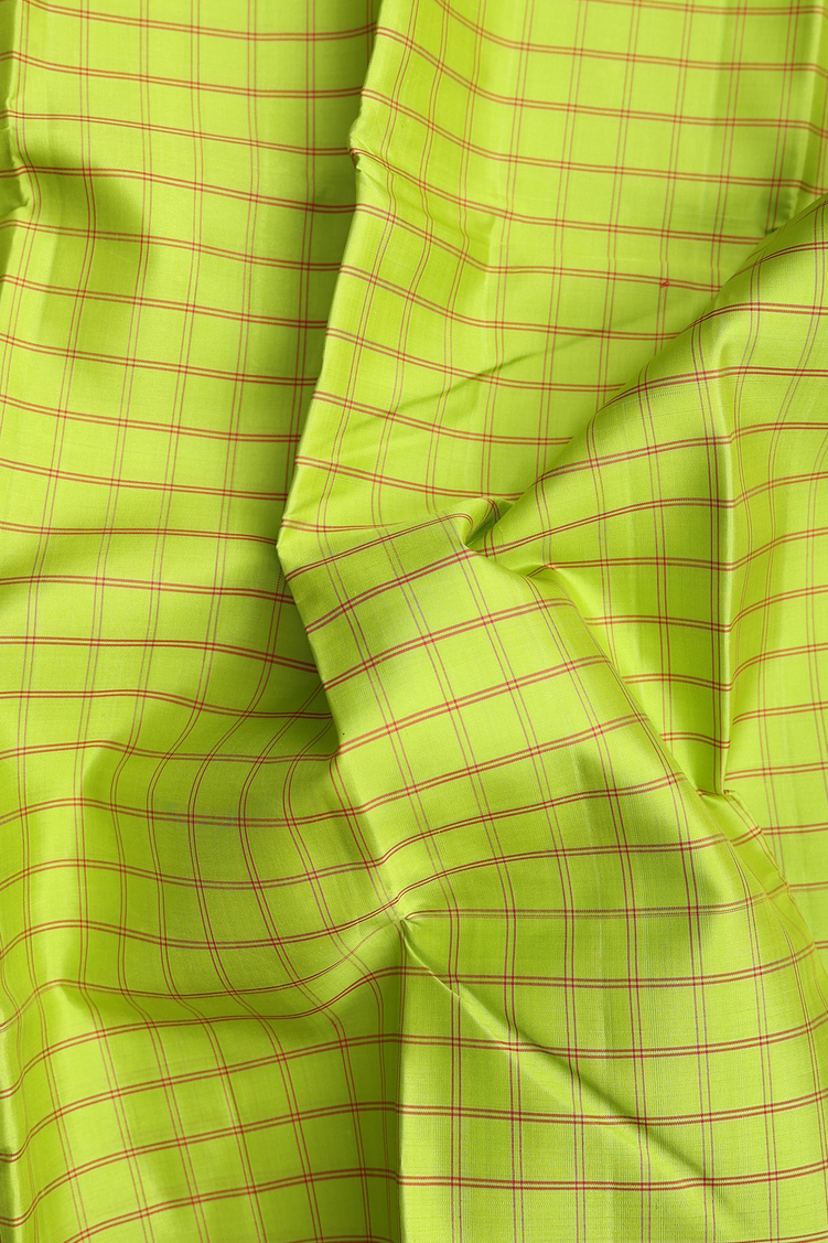 Kanchipuram Silk Saree In Lime Green With Checks Design