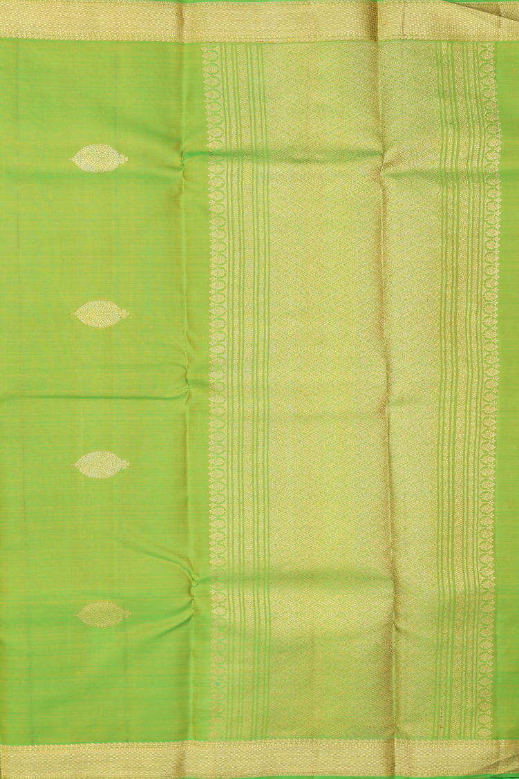 Kanchipuram Silk Saree In Pear Green With Zari Buttas