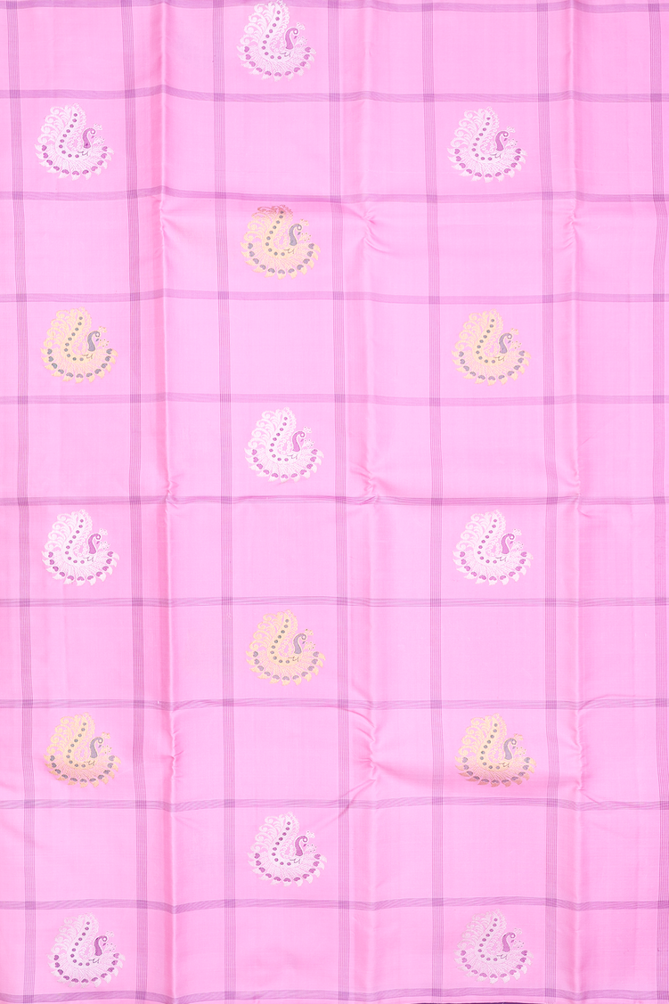 Kanchipuram Silk Saree In Pink Along Checks With Motifs