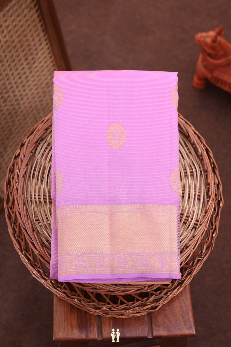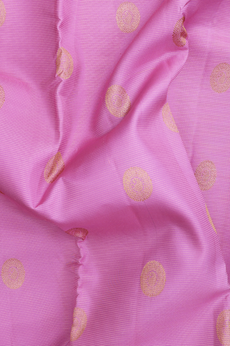 Kanchipuram Silk Saree In Pink Along Stripes With Buttas