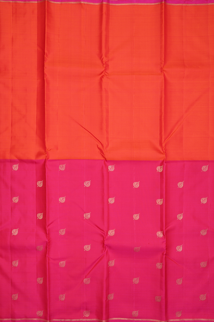 Kanchipuram Silk Saree In Pink And Orange With Half And Half
