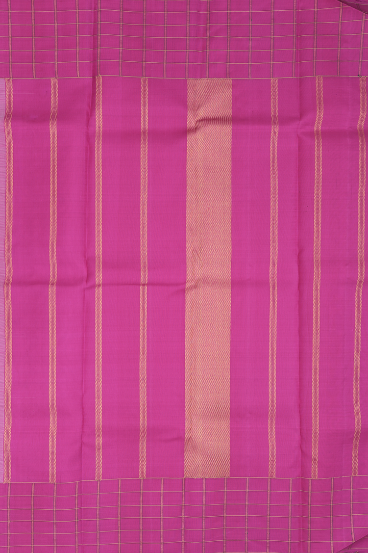 Draped in the timeless elegance of authentic kanchipuram silk, this exquisite saree showcases a delicate pink hue adorned with intricate floral buttis with checks border that dance across the fabric. Each butti is meticulously woven, reflecting the masterful craftsmanship of traditional south indian weaving. The lustrous silk drapes beautifully, creating graceful folds that enhance your silhouette. Perfect for weddings, festivals, and special occasions, this saree combines heritage artistry with refined sophistication. A treasured investment piece that celebrates classical Indian textile traditions.