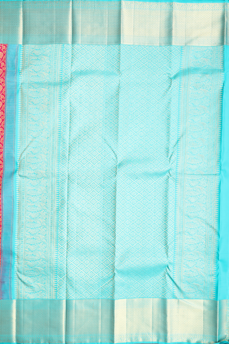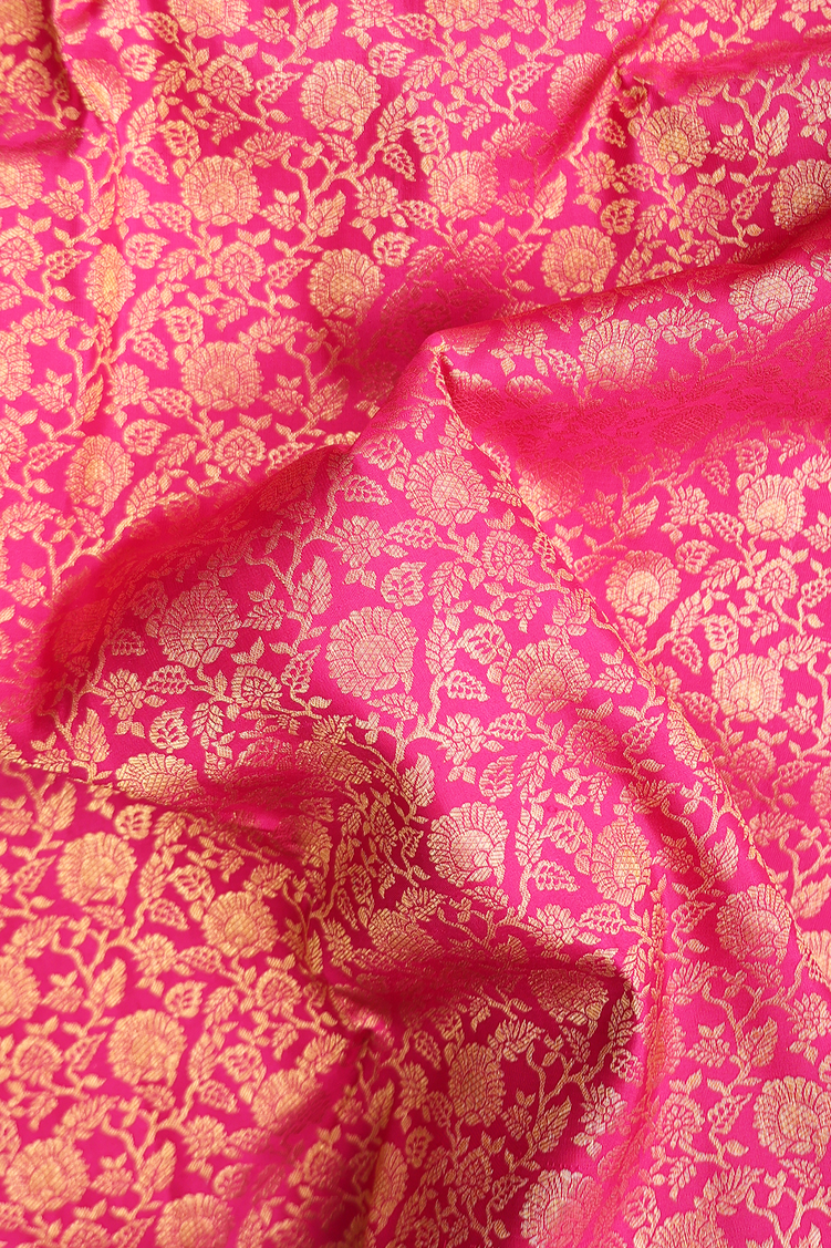 Kanchipuram Silk Saree In Hibiscus Red With Floral Design