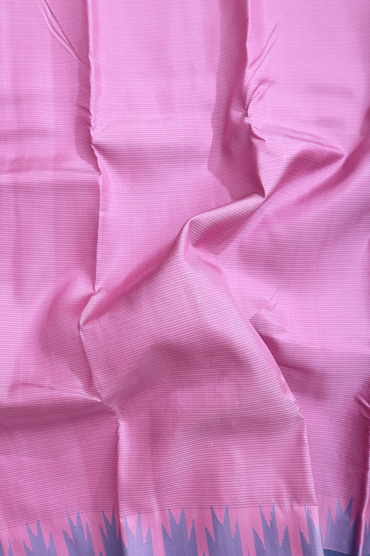 Kanchipuram Silk Saree In Pink With Stripes Design