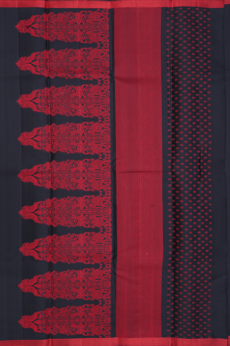 Kanchipuram Silk Saree In Plain Black With Threadwork Border