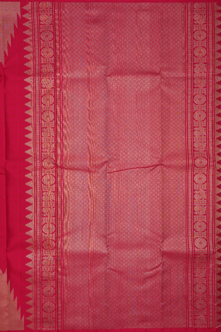 Kanchipuram Silk Saree In Plain Chilli Red With Temple Border