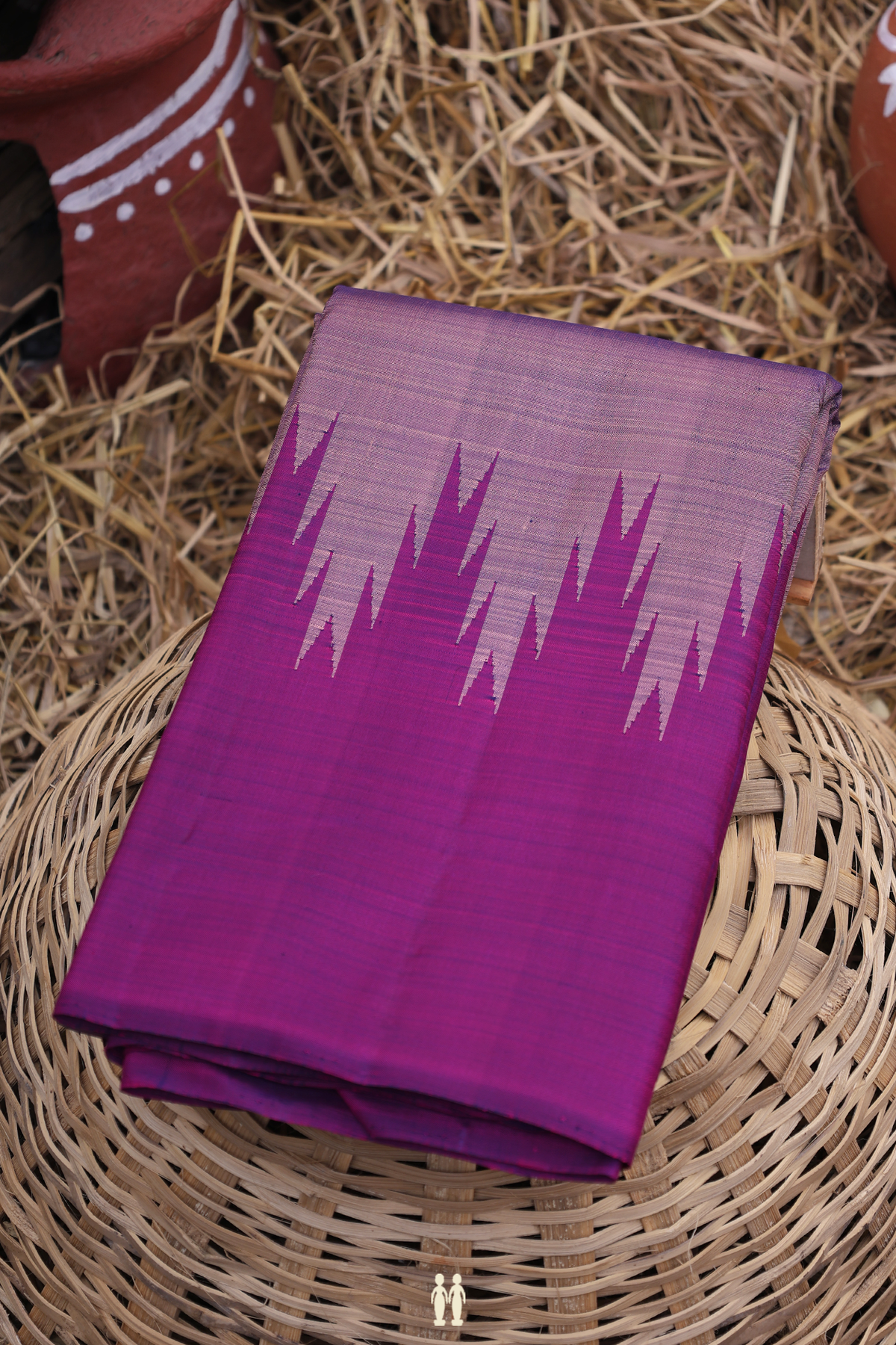 Kanchipuram Silk Saree In Plain Dual Tone With Temple Border