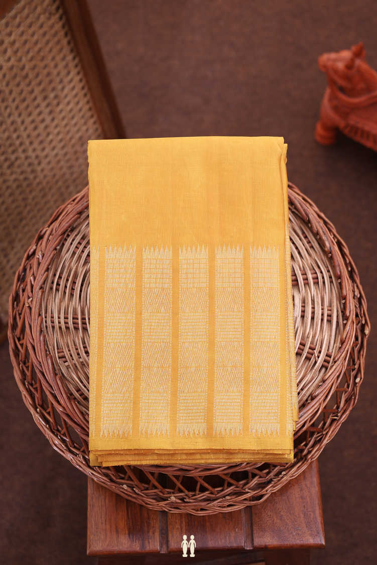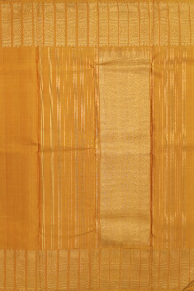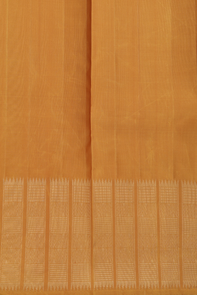 Kanchipuram Silk Saree In Plain Ochre Orange With Zari Border