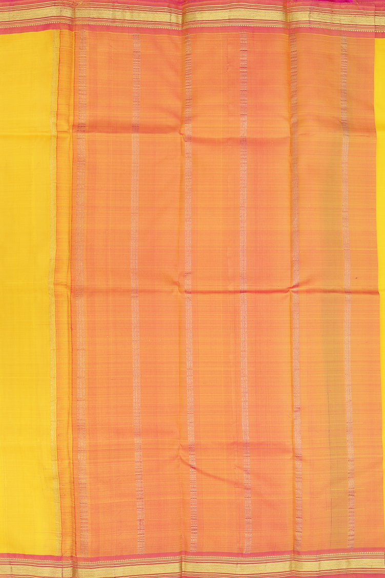 Kanchipuram Silk Saree In Plain Yellow With Contrast Border