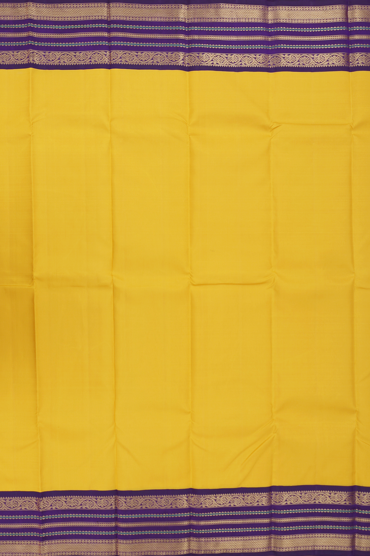Kanchipuram Silk Saree In Plain Yellow With Korvai Border