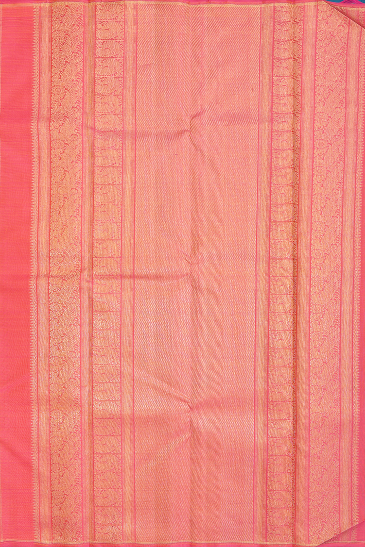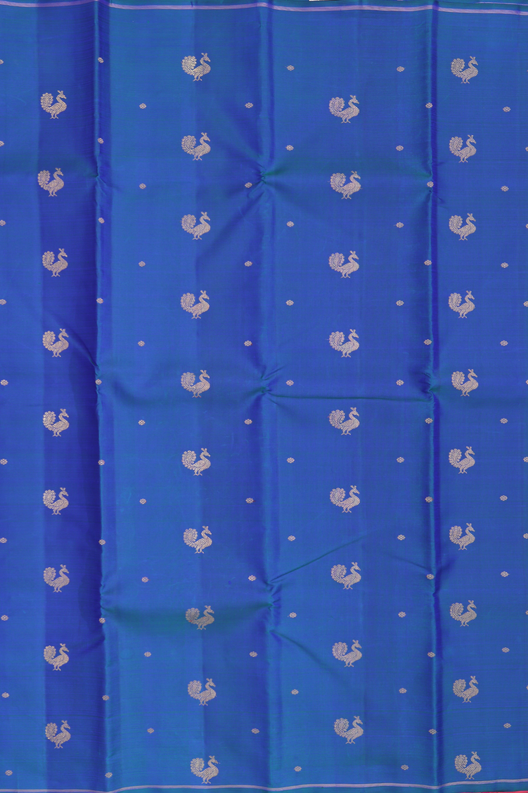 Kanchipuram Silk Saree In Prussian Blue With Peacock Buttas