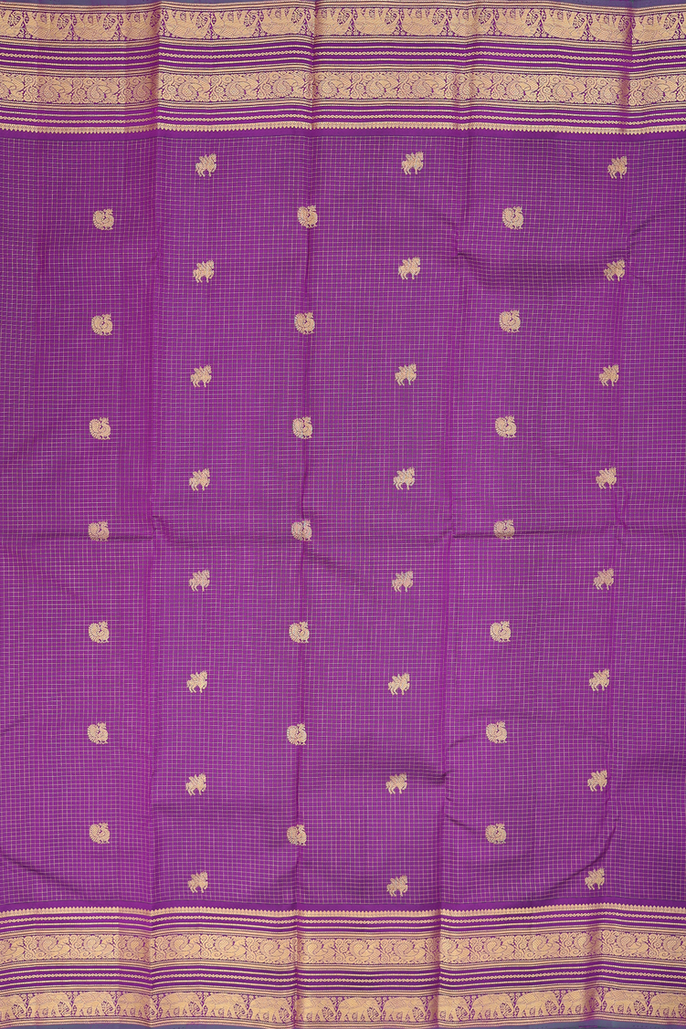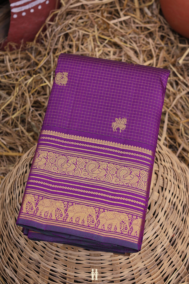 Kanchipuram Silk Saree In Purple With Checks Design