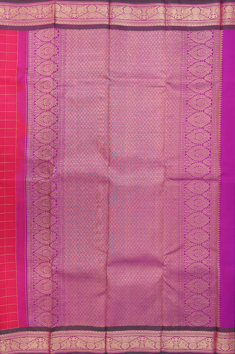 Kanchipuram Silk Saree In Rani Pink With Checks Design