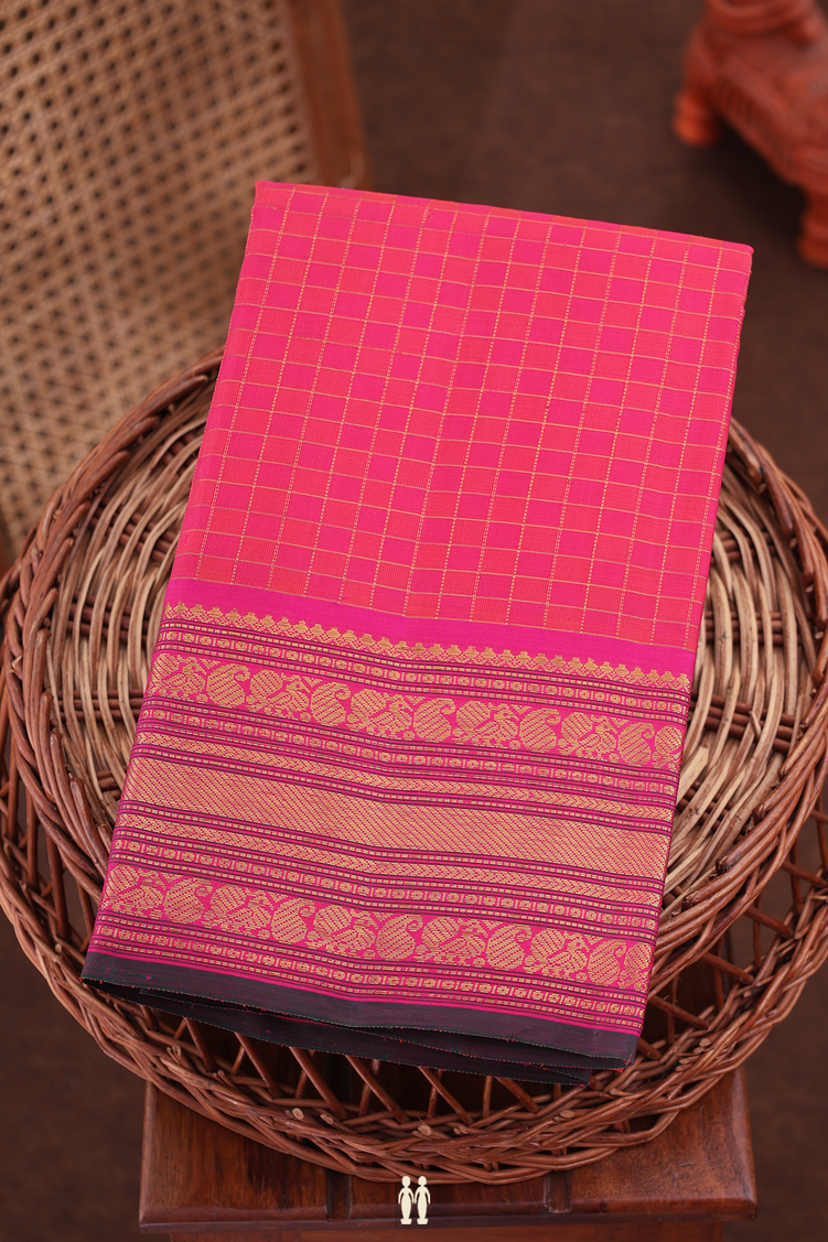 Kanchipuram Silk Saree In Rani Pink With Checks Design