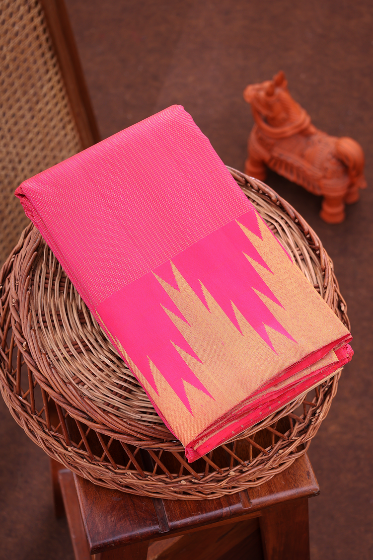 Kanchipuram Silk Saree In Rani Pink With Checks Design