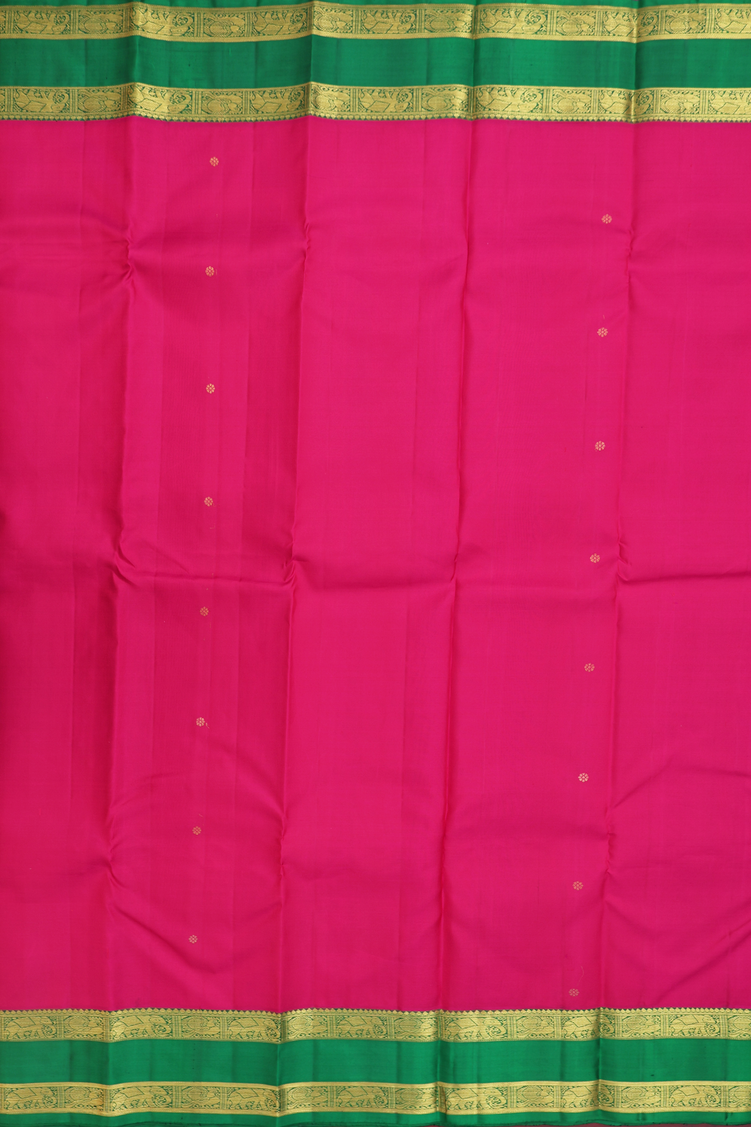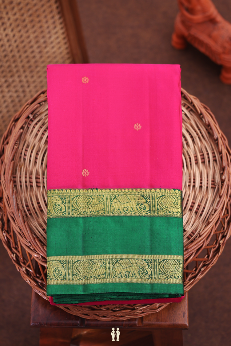Kanchipuram Silk Saree In Rani Pink With Floral Buttas