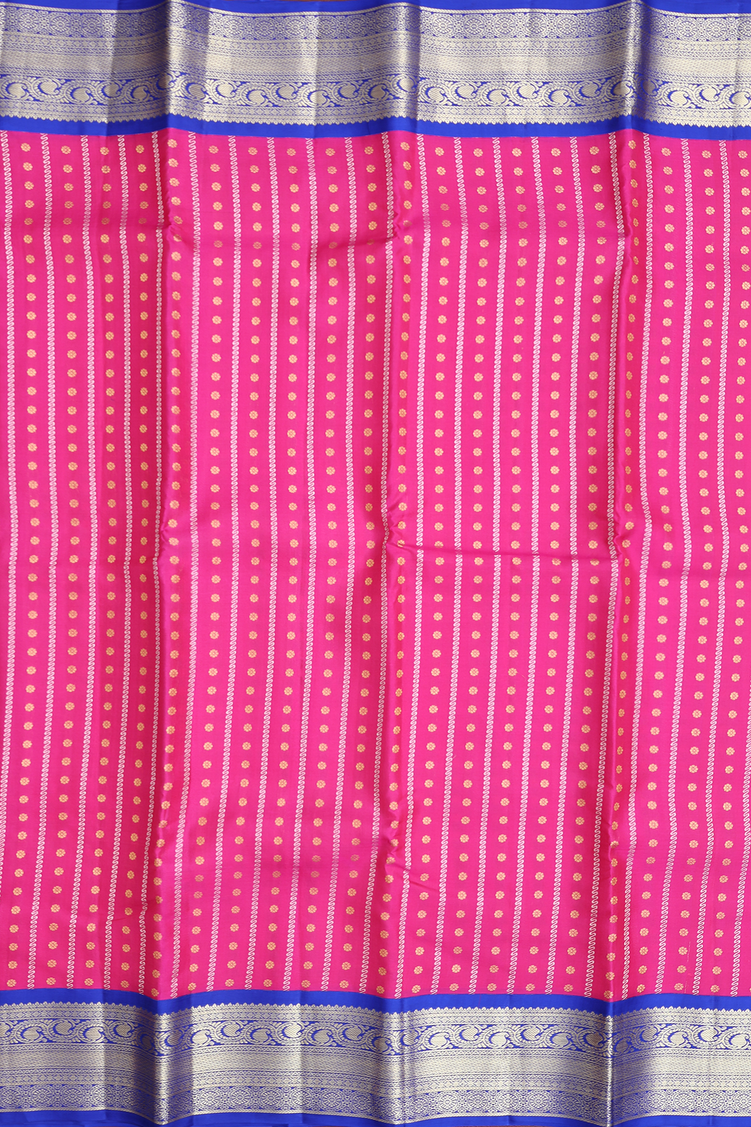 Kanchipuram Silk Saree In Rani Pink With Stripes Design