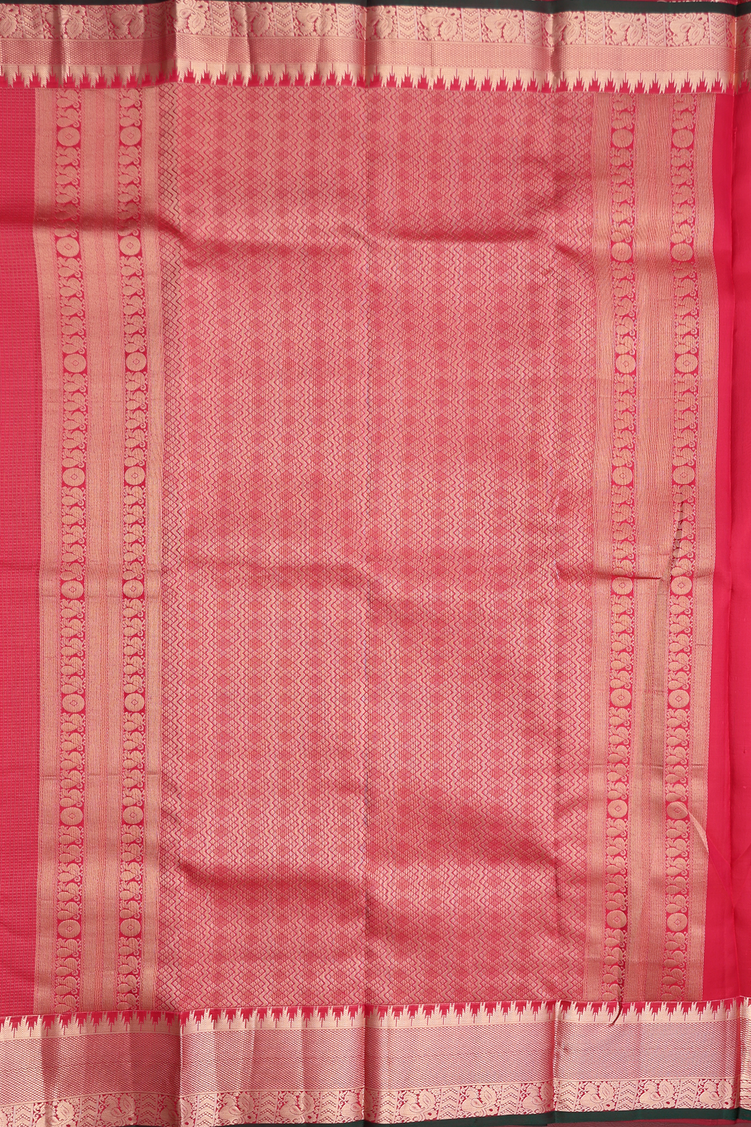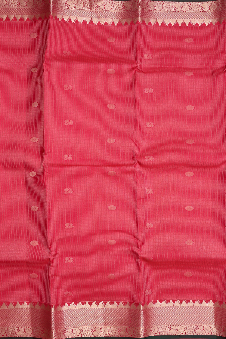 Kanchipuram Silk Saree In Red Along Checks With Buttas