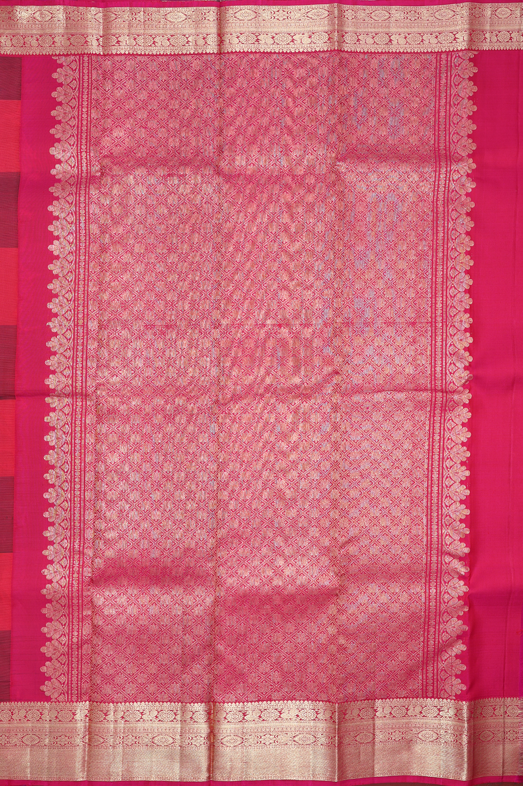 Kanchipuram Silk Saree In Red And Green With Checks Design