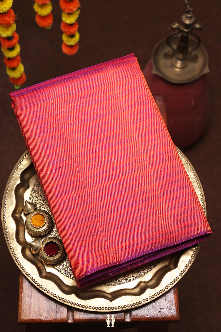 Elevate your wardrobe with this exquisite kanchipuram silk saree featuring a harmonious blend of rich red and regal purple hues. The elegant stripes design adds a timeless texture, enhancing its sophisticated appeal. Woven with premium silk, this saree offers a luxurious drape and a subtle sheen, perfect for special occasions where grace meets tradition.